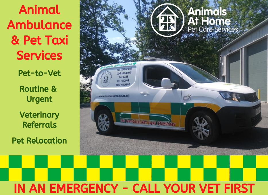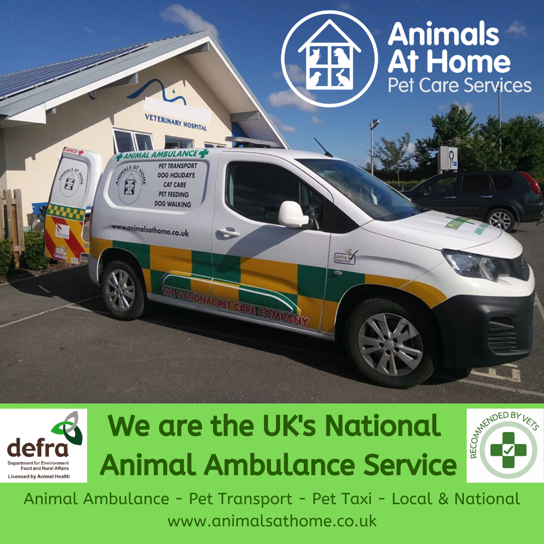 HEAD OFFICE for the Animals at Home, THE NATIONAL PET CARE COMPANY. Use our website to find your local pet taxi and animal ambulance branch. Our pet carers work alongside Mobile Vets by offering pet-to-vet for routine and urgent veterinary care and pet cremation services. All branches also offer pet care for young, fit and well, infirm and elderly pets across the UK. DEFRA Approved, Welfare in Transport licensed pet transport / animal ambulance vehicles.